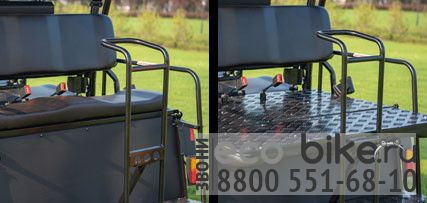Одной из важных особенностей этого автомобиля - преобразование из гольфкара в удобный UTV. В нем предусмотрена возможность установки грузового кузова и короткой крыши, вместо заднего ряда сидений и длинной крышей над ними. Причем можно как купить дополнительный грузовой комплект за 100 тыс рублей, так и заменить задние сидения на грузовой отсек БЕСПЛАТНО!